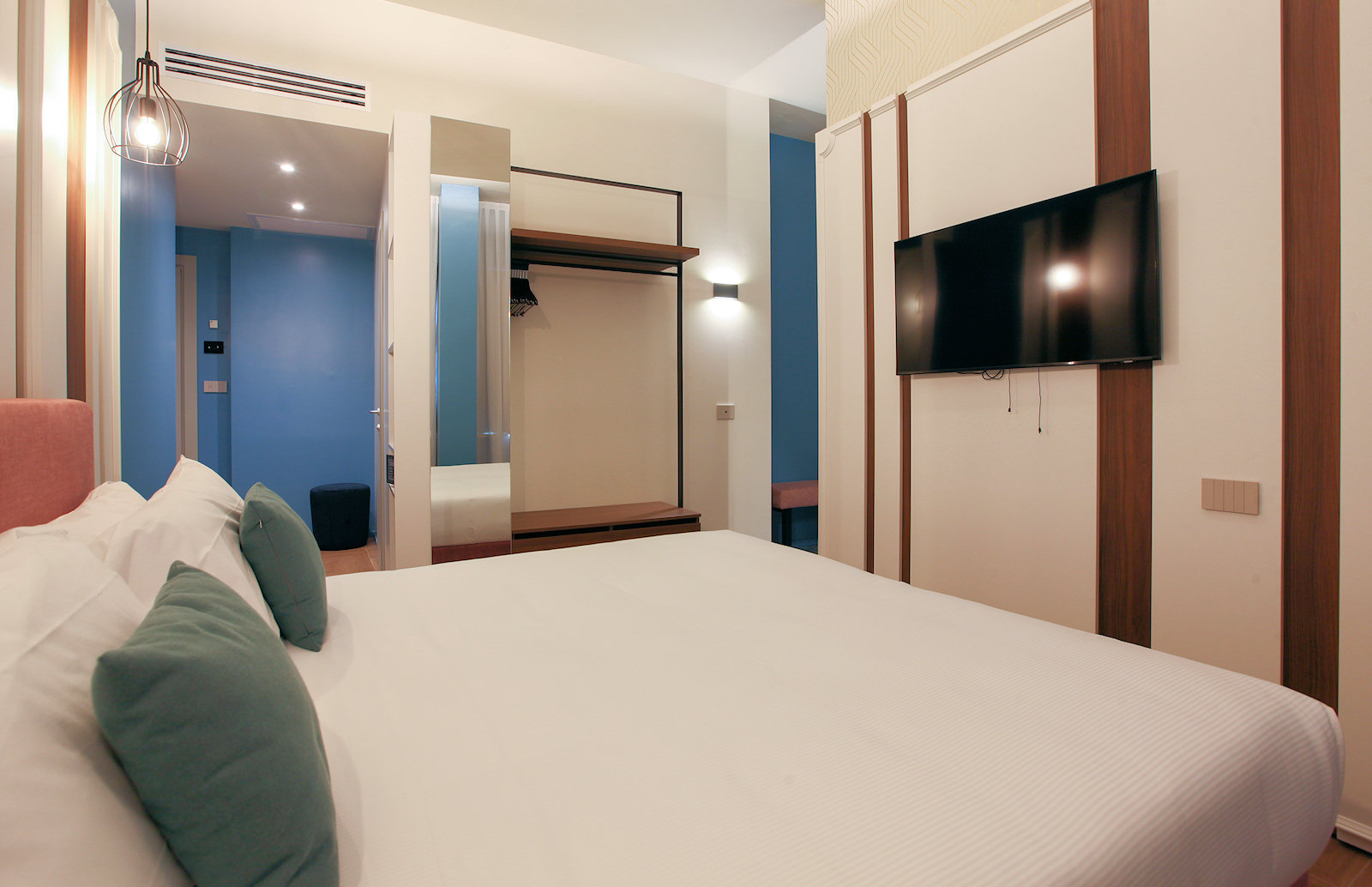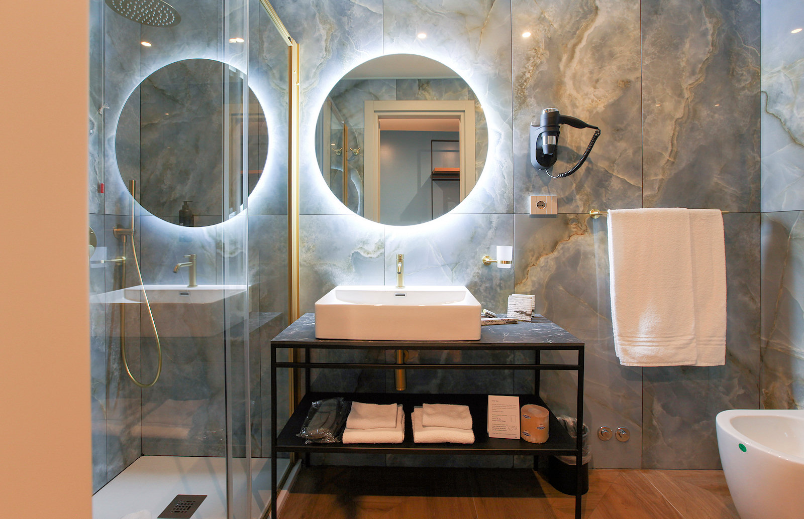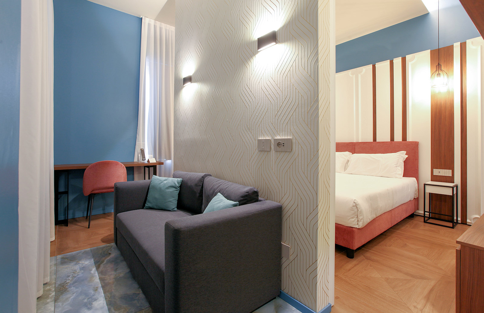Designed to ensure maximum comfort for the whole family, this spacious and refined room can accommodate up to three adults and two children (under 3 years of age). It is the perfect environment to relax and share precious moments after a day spent exploring the treasures of this renowned neighborhood.