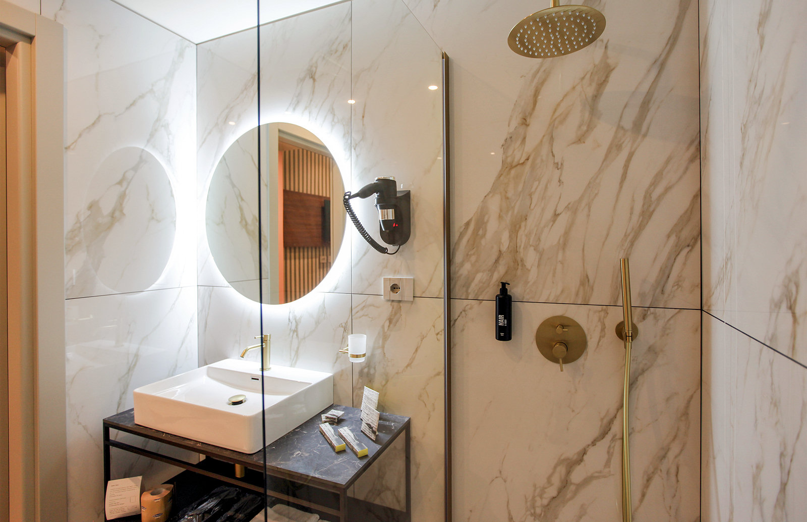 The private bathroom includes a shower, bidet, hairdryer, complimentary toiletries, and soft bathrobes.